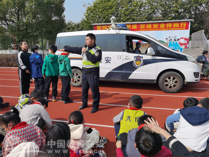 中国教育在线浙江站讯 (实习记者 鲁少辛 通讯员 叶声伟)3月3日上午,大成实验学校联合拱墅区交警文晖中队共同举行“警校携手迎亚运 交通安全伴我行“交通安全专题活动,大成实验“平安迎亚运”系列活动。