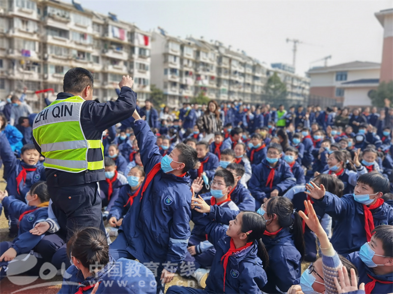 应急疏散演练结束后,拱墅区文晖交警中队刘建芳警官和邓警官对全校师生进行了道路交通安全的宣教及演练。
