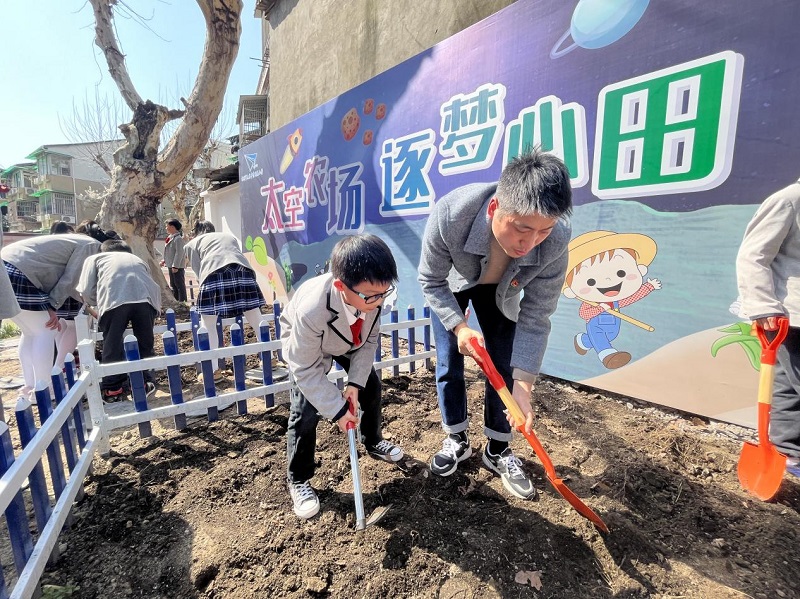同学们在各自责任区接过属于他们自己的太空种子,开展了农场的栽种活动。经过翻地、撒种子、浇水等环节,同学们亲手种下了太空种子,也播下了希望和梦想。在接下来的时间里,参与活动的同学们将精心栽培太空种子,观察记录其成长过程。