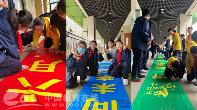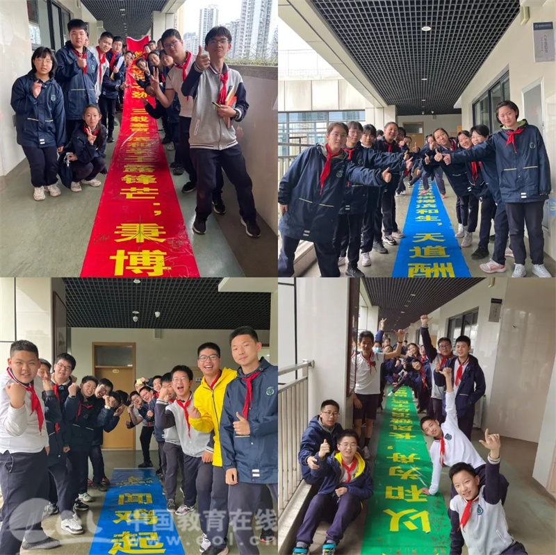 七、八年级的学弟学妹们在助威横幅上签名,并精心制作加油视频,为九年级的学长学姐们鼓劲加油,送上最诚挚的祝福;毛满红校长还为各班颁发倒计时牌,愿同学们珍惜每一分每一秒,为梦想砥砺前行。