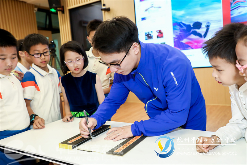 随后,王地应邀与胜实小海燕代表们面对面畅聊。他还向同学们说了自己对体育二十多年如一日的热爱。其实,他这一路走来并非一帆风顺,这让他认识到,成功离不开坚持和忍耐。当有的小海燕请王地签名或合影时,谦和的他笑意盈盈地满足了同学们的要求,并热心地为小海燕们寄语。