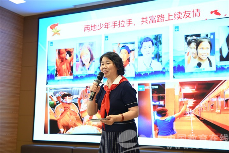 魏老师首先给两校的孩子们送上了亲切的节日祝福。她回忆起之前组织的浙川少年手拉手夏令营活动,感叹起两校的缘分早在以前就已联结,看着夏令营的孩子们渐渐长大成为建设祖国的栋梁,魏老师发自内心的高兴,也希望孩子们都能成长为新时代的好少年。
