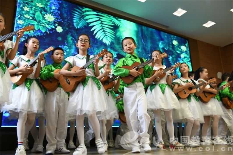 六月里的孩子是祖国花园里每一个绽放的花朵,美好的生活中,欢乐的节日里,少先队员们感谢党给予阳光灿烂的今天。翠苑二小尤克里里社团和舞蹈社团分别带来了表演《TOTORO》和《童心向党》,精彩的表演让友谊的花朵绽放,让红色种子生根发芽。