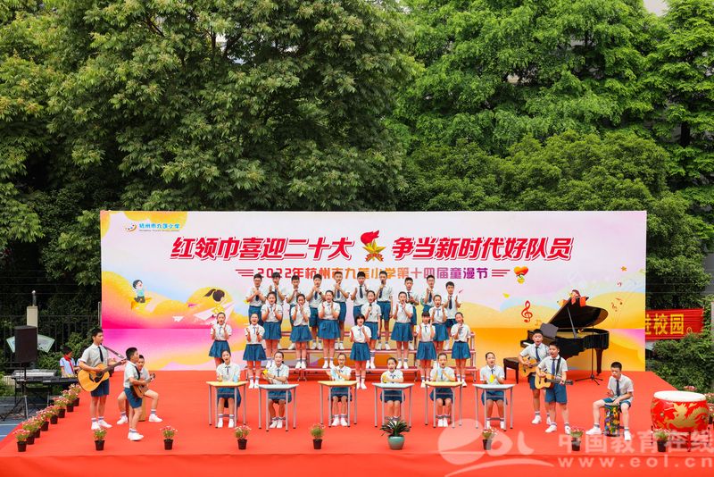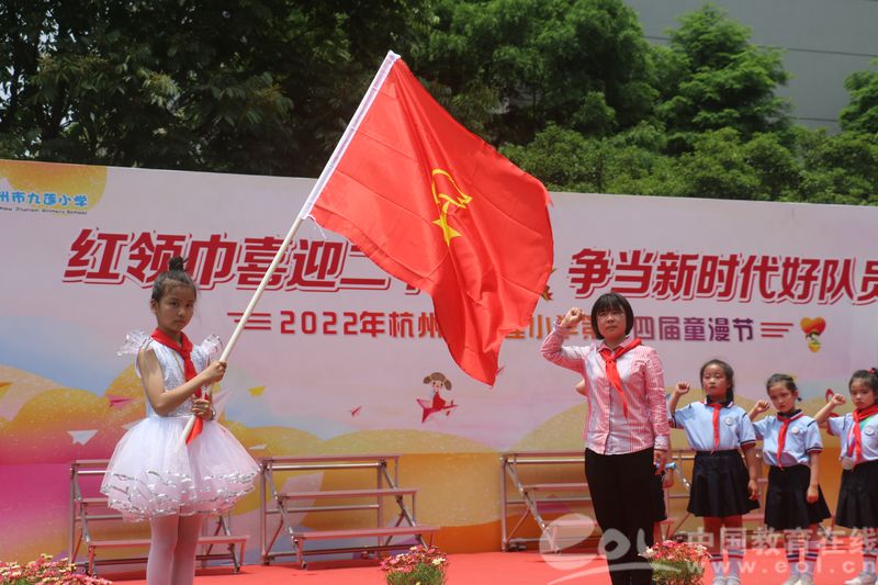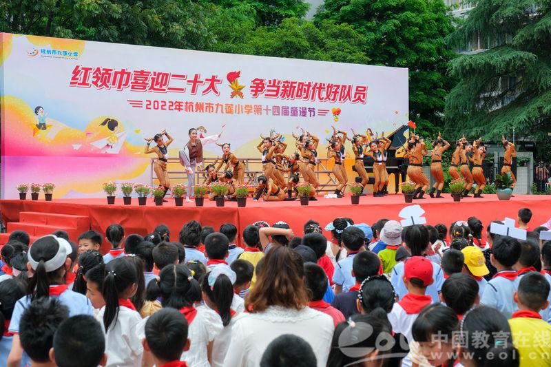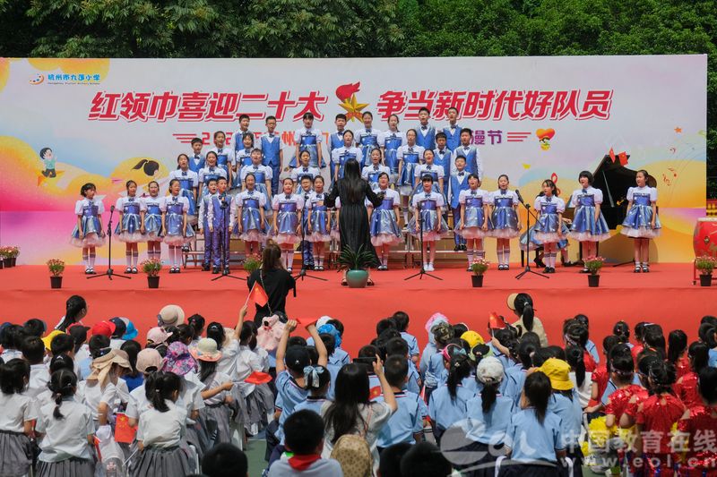 中国教育在线浙江站讯(记者 白菁洁)5月31日,九莲小学师生为迎接六一儿童节的到来,在校举行了“红领巾喜迎二十大 争当新时代好队员”六一节庆祝活动暨第十四届童漫节活动。