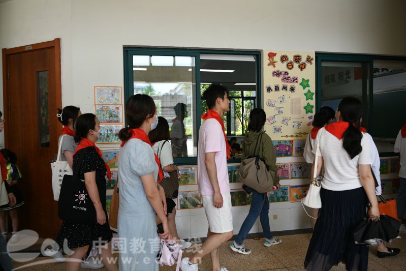 各位专家和辅导员们首先兴致勃勃地考察了学校的少先队阵地建设。从“红领巾”小舞台,到“红领巾”阅读吧;从教室中队角到楼层榜样区;从百草园到百草廊;从“红领巾”寻回岛到校园足球展示厅……一个个可爱机灵的红领巾小解说员向大家逐一介绍了阵地内涵及特色。