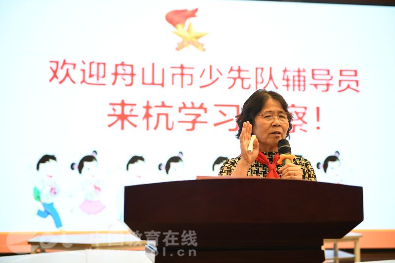 精彩的队活动展示过后,杭州市翠苑第二小学大队辅导员倪萍老师做少先队工作介绍。她从“组建核心队伍,勇担思想引路人”、“筑牢活动阵地, 夯实强国筑梦场”、“加强活动建设,打造先锋成长营”,三个方面介绍了学校的少先队工作,特别对如何发挥集体智慧,推动少先队活动课有效开展做了分享。翠苑二小将聚焦政治启蒙和思想引领的育人使命,以更高的要求,更新的思路,不断开创少先队工作新局面。