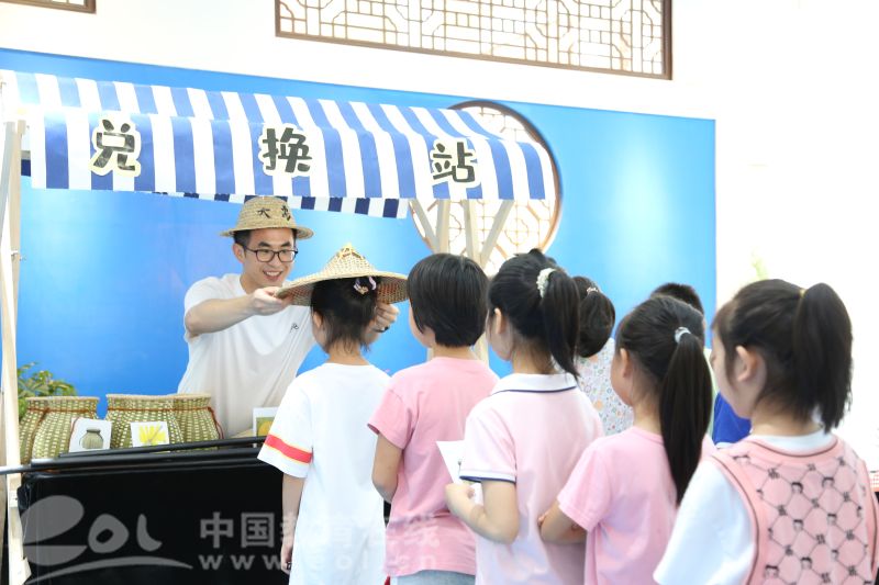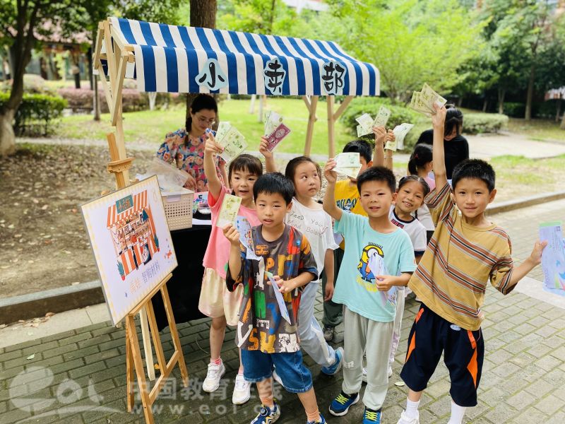 镜头二:在一年级场馆外,一位同学手里紧紧攥着纸币,对巡视的老师说:“老师老师,好有趣呀!下午还能再玩吗?还没玩儿够呢!”