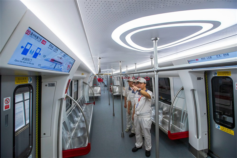 不仅如此,相较于S1线列车,S2线车辆还进行了不少“升级换代”。比如全项目批量采用国产永磁同步牵引系统,具有重量更轻、绿色节能、牵引效率更高的特点。据初步测算,S2线列车较S1线列车预计可减少能耗15%以上。又比如,S2线列车采用列车健康维护系统(PHM),并搭配逻辑控制单元(LCU),构建智能运维体系,将为乘客打造更为安全的出行环境。再比如,S2线列车上安装有43寸动态LCD大屏,能动态显示车辆线路信息,界面更加友好和人性化。