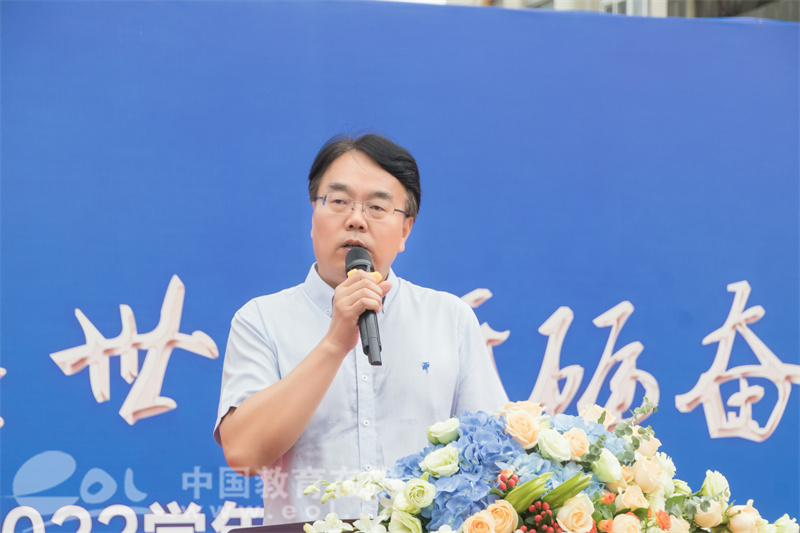 他号召全体师生,以饱满的精神状态投入新学期的学习生活中,孕育新希望,创造新业绩。