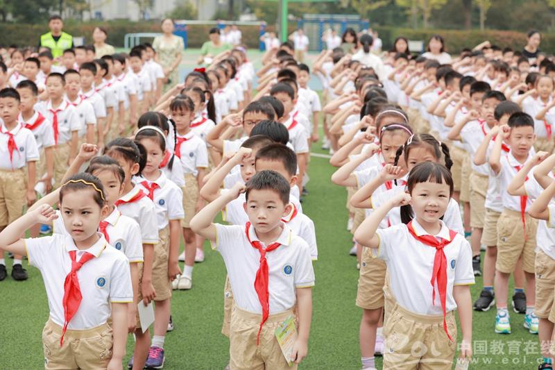 中国教育在线浙江站讯(编辑 邱彬鑫 通讯员 刘念)9月1日,杭州市文澜小学隆重举行了“澜星向未来 一起向未来——2022学年第一学期开学典礼”活动。国旗护卫队踏着整齐的步伐走向升旗台,全校师生举行升旗仪式。伴随着雄壮的国歌声,杭州市文澜小学开学典礼正式开始。