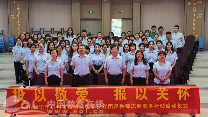中国教育在线浙江站讯 (记者 鲁少辛 通讯员 骆薇)9月8日,景成实验学校党总支和团委组织开展了“投以敬爱,报以关怀”教师节主题活动暨2022学年党团员教师七彩志愿服务行动启动仪式,学校党团员教师及学生团队员代表参加此次活动。