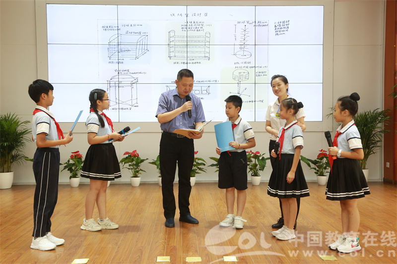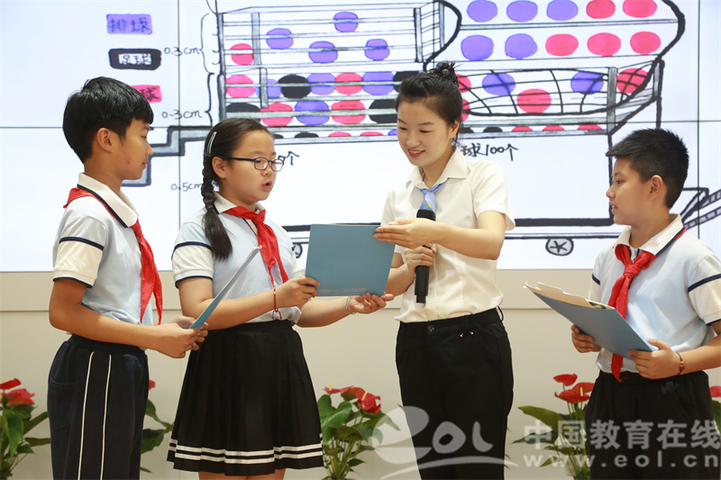 杭州市大禹路小学的老师和同学一起用课本剧的方式,以生动活泼的形式呈现了《校园球类收纳架设计》项目的设计初衷和项目推进过程。