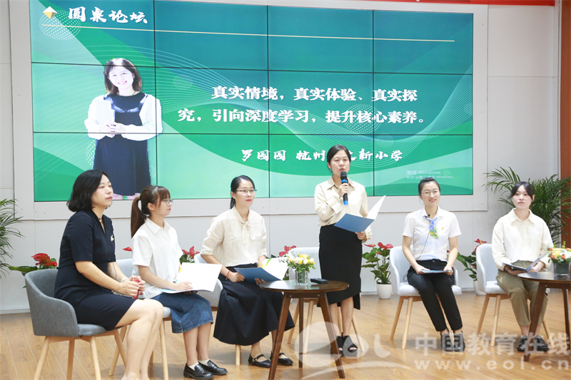 杭州市拱墅区育才京杭小学陈佳静老师作了《聚焦项目化学习支架的5T校本实践》的观点交流,分享了京杭小学如何在“5T”的校本研修下推进项目化学习,并在这个框架下如何借助共同体和校本的资源开展《校园球类收纳架》项目实践和支架迭代研究。