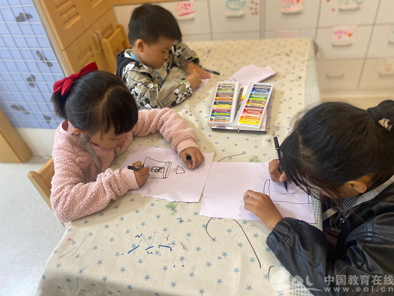 不同种类的垃圾有其不同的标识。教师引导孩子们认识四种垃圾分类标志,并让孩子们根据自己的巧思进行再设计和再创造,画上代表垃圾的小图标和笑脸哭脸等。在设计标志的过程中,孩子们也在逐步强化垃圾的分类方法。
