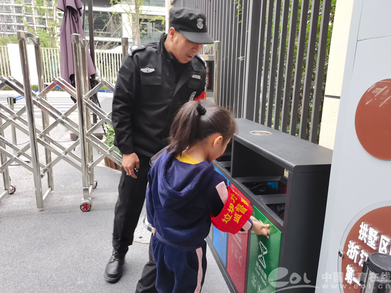 学习了丰富的垃圾分类知识后,教师组织大班的孩子们成立了一支垃圾分类宣传小队,在校园内开展垃圾分类的监督、提醒和宣传。孩子们戴上红色的袖章,认真地检查起了校园各种的垃圾分类情况。在校园内,教师设置特定的情境,这里有垃圾不小心“走错家门”了。孩子们第一时间提醒负责这片区域垃圾桶的保安叔叔,并告诉叔叔垃圾分类的小口诀。在孩子们的帮助下,垃圾回到了自己真正的“家”。