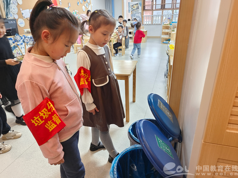宣传小队还走入各班教室对垃圾分类进行监督。小队员们仔细地打开每个垃圾桶寻找可能被不小心扔错的垃圾。随着监督活动的逐渐深入,孩子们发现不管是小班还是中班的弟弟妹妹,都在垃圾分类上有了很大的进步,没有垃圾“走错家门”。