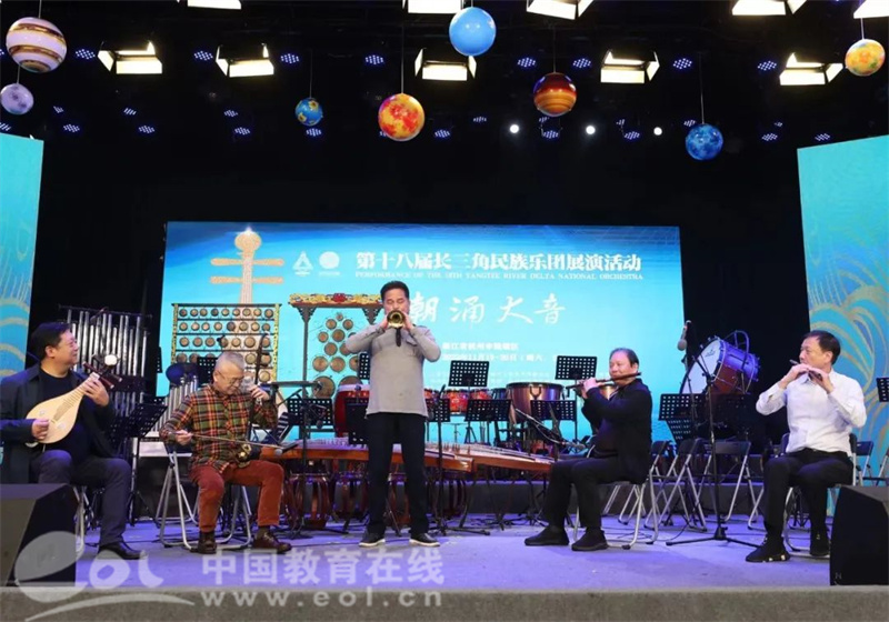 中国教育在线浙江站讯 (记者 陈显婷 通讯员 徐燕军)11月19日,第十八届长三角民族乐团展演在钱塘区文海实验学校举行,民乐专家大咖即兴上台演奏的一曲《唱支山歌给党听》,将展演活动推向高潮。