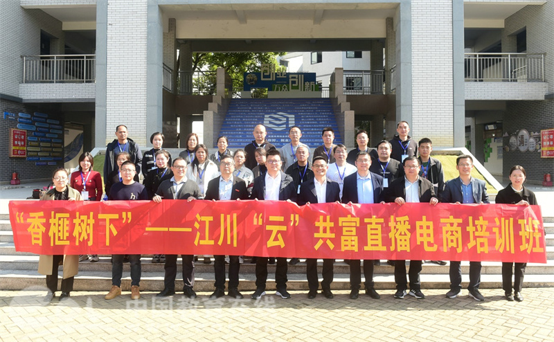 中国教育在线浙江站讯 (记者 陈显婷 通讯员 程斌 王继华)11月7日-20日,由义乌市江东街道办事处、磐安县窈川乡人民政府主办,义乌工商职业技术学院创业学院承办的“香榧树下”——江川“云”共富直播电商培训班在义乌举行。来自窈川乡的22名新农人电商主播等共同参加了本次培训班。