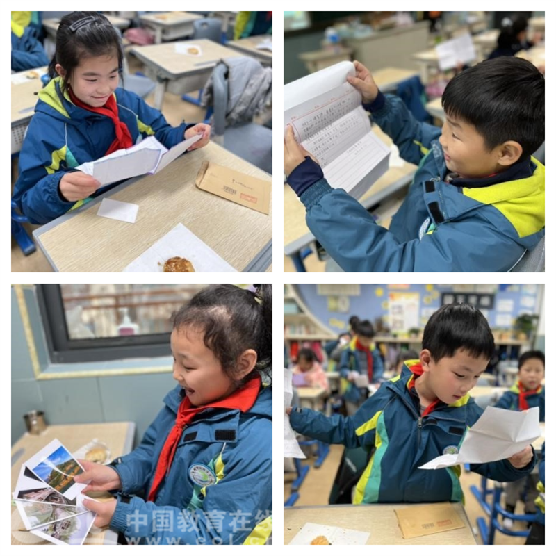 来到澎雅小学四(4)班,孩子们正在兴高采烈地分发信件。原来,这就是“百里”课堂的秘密——信。书信曾经是人们交流信息和感情的主要方式,即便在科技发达的今天,它仍然是重要的联络手段。四年级语文上册恰好有以“写信”为主题的习作内容,结合新课标“变革育人方式”的要求,澎雅小学的老师们细细琢磨教材,想到了“互通书信”这样的教学方式。