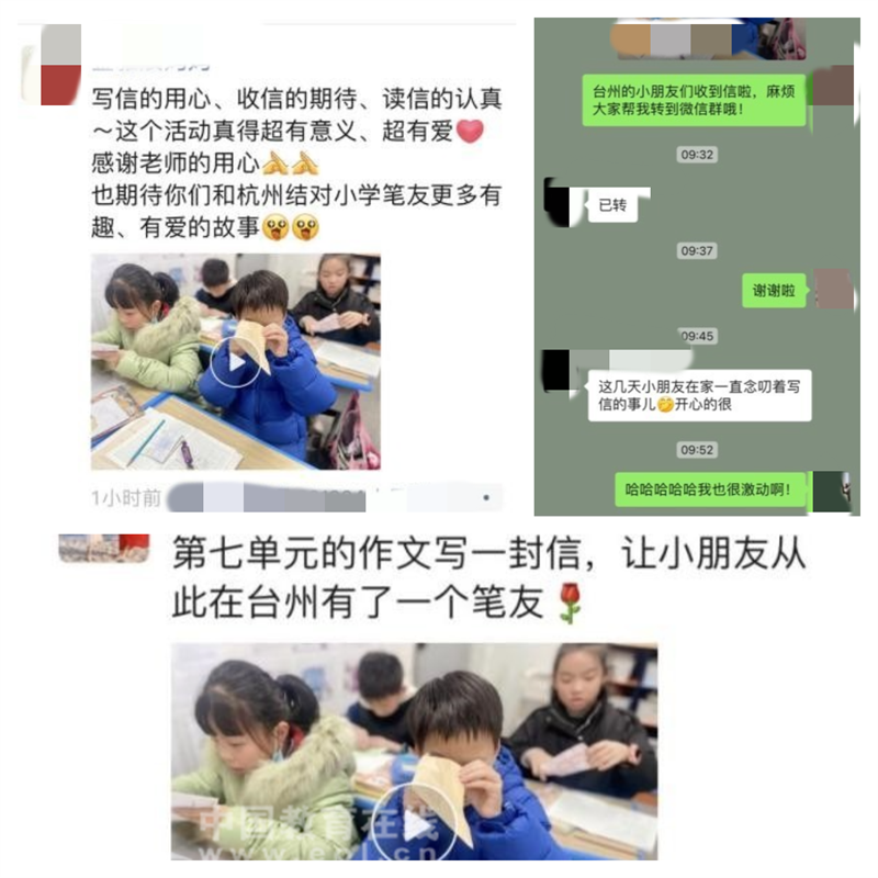 12月8日,澎雅的同学们率先收到了台州笔友们的首信,大家激动得手舞足蹈。虽然相隔千里,但看到文字的那一刻,彼此的心却紧紧相连。从信中,同学们了解到了台州的紫阳街、海苔饼和临海长城……