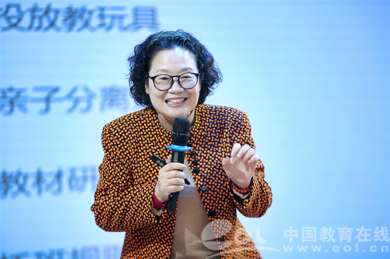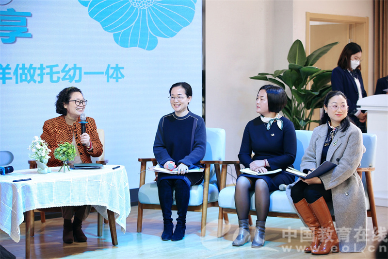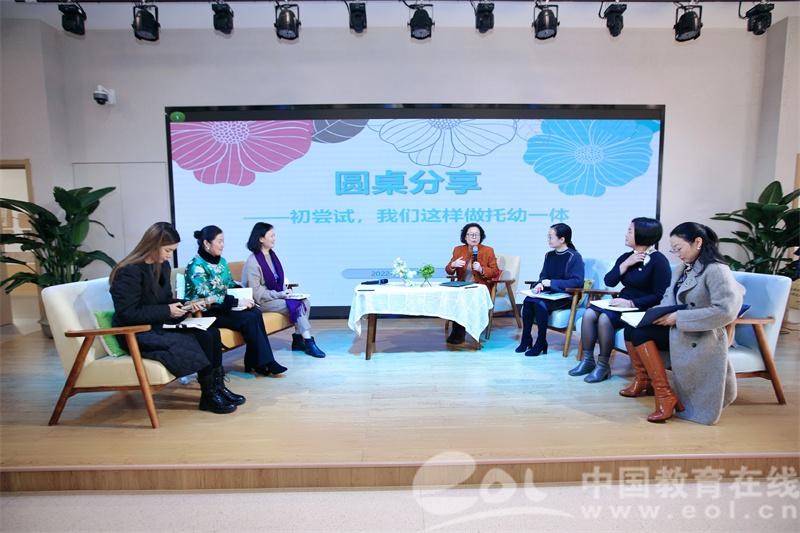 专题论坛现场还进行了圆桌论坛,王芳领衔全区公、民办幼儿园园长,以“初尝试,我们这样做托幼一体”为主题,围绕“下沉办托育”“回应性照护”“去幼儿园化”等方面开展研讨。