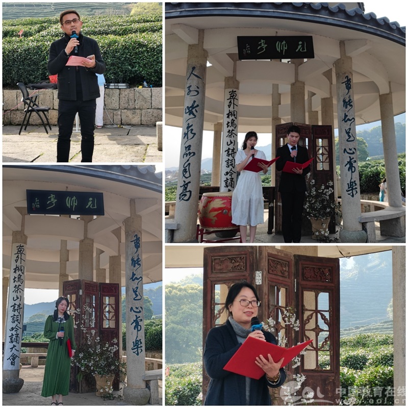 揭牌仪式前,浙江经济职业技术学院文化素质教育中心师生在外桐坞村元帅亭茶山上举办了“外桐坞村茶山诗词吟诵会”。活动中,学生尹楠晰、毛越朗诵了《春天的诗行》,陈秀秀表演京剧、诗朗诵《又落梨花》,斯静亚教授朗诵了《茶的情诗》。活动还邀请了翡翠·炫声筝团、小乌龙合唱团等表演了精彩节目,赢得了现场阵阵掌声。