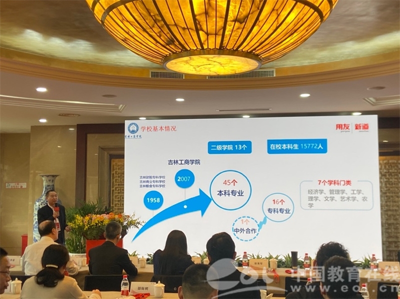 吉林工商学院会计学院院长李长山教授带来了题为《数智驱动 创新教改——校企深度融合共建设数智产业学院建设》的演讲。李长山从吉林地域性的培养需求出发,结合校企协同育人-共建共管共育共享共创模式及培养理念等方面提出了在数智产业学院合作和特色建设上的新方向。