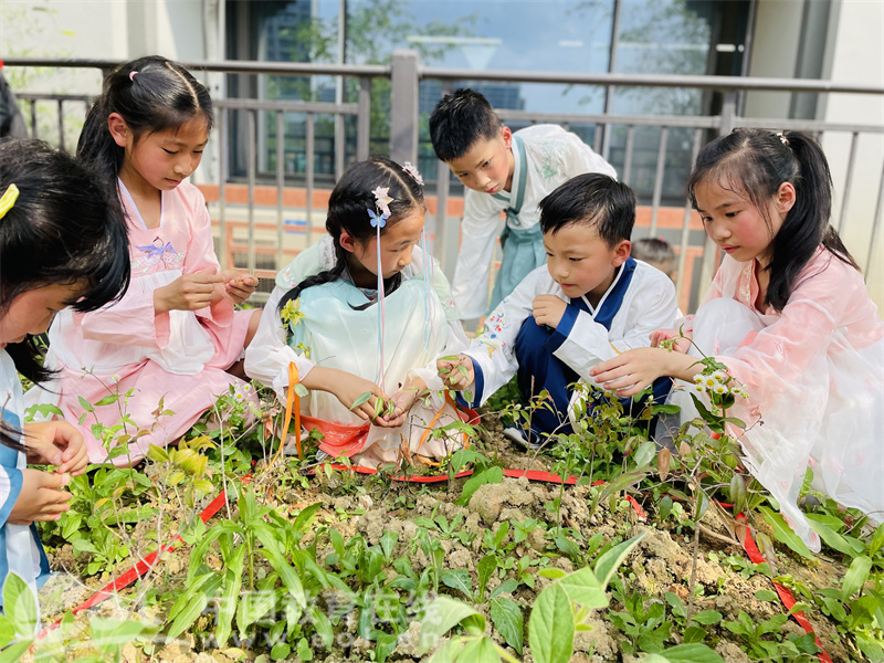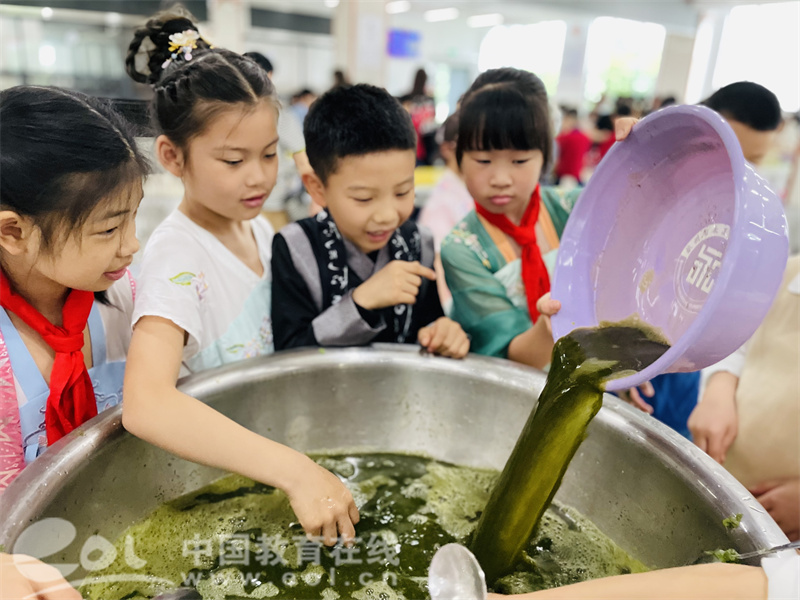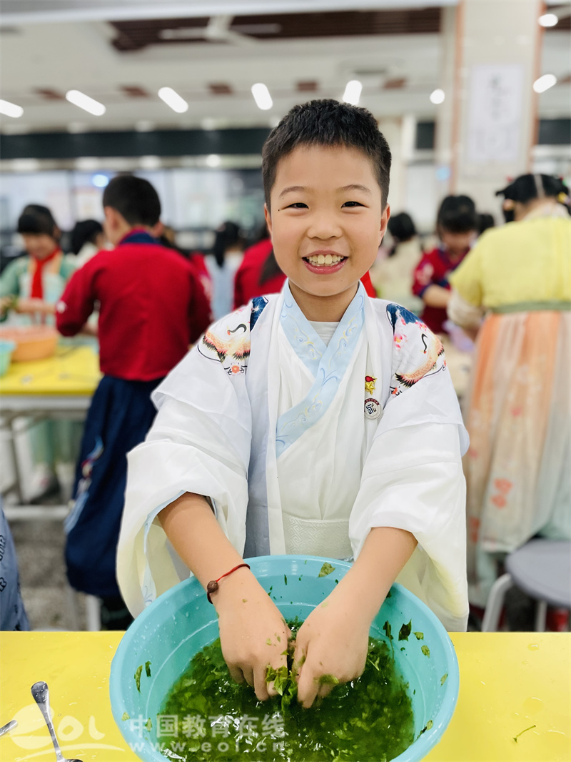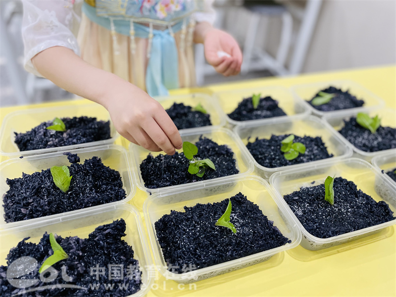 将文化传承与劳动教育相结合,是永正实验学校江南习俗课程的特征与亮点。据学校执行校长陆锡炯介绍,这样的乌米饭制作活动已开展第三届,今年是最完整的一次。“从种植到采摘,从榨汁到品尝,孩子们全程参与体验,深刻感受到了立夏时节的习俗文化,并体验了种植、培育的辛苦不易,明白了只有自己的劳动成果才最为香甜。”