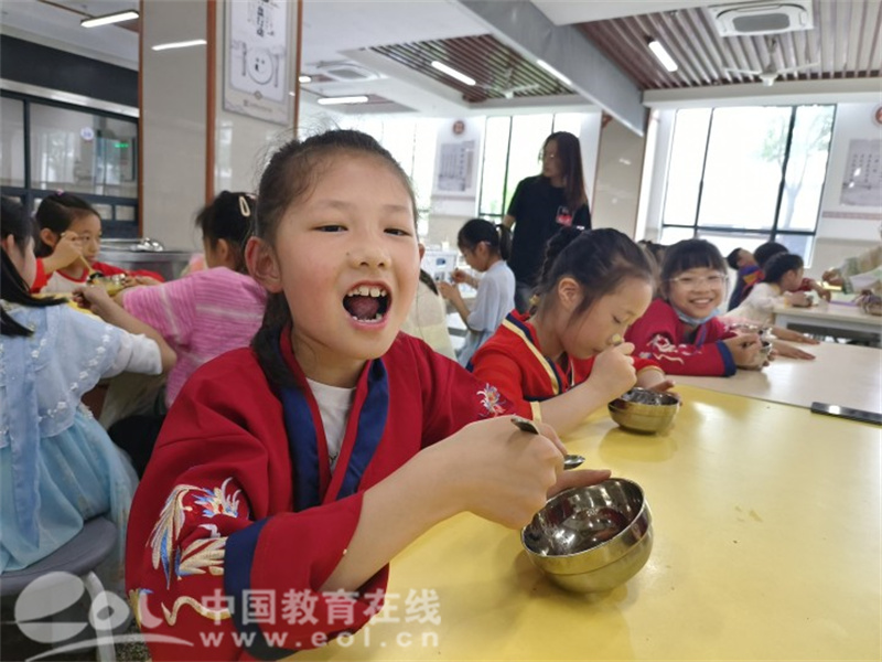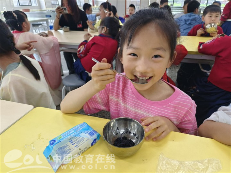 中国教育在线浙江站讯 (记者 陈显婷 通讯员 吴月婷)自己吃自己种。今日立夏,有个习俗就是吃乌米饭,有祛风解毒、避免蚊虫叮咬的功效。这不,今天中午,永正实验学校一群小伢儿看着刚出炉热乎乎的乌米饭直流口水,闻着散发着的树叶的清香,蘸糖来吃,甜而不腻。