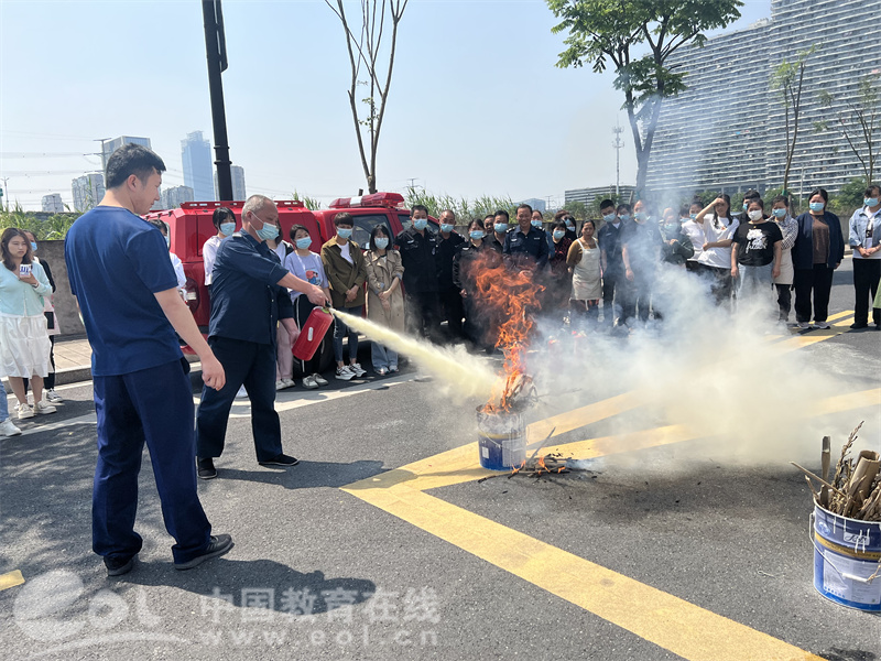 现场,覃队长还向教师们展示了灭火器的用法,加强了教师们应对火情时的应对能力。