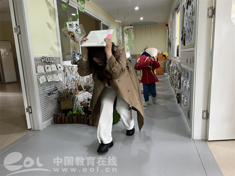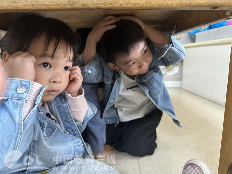 随着警报声响起,各班老师立即告知孩子们“地震了,不要慌”,同时引导孩子们快速到就近的桌子下、墙角等安全三角区紧急避险。老师带领幼儿按照预定路线撤离到安全地带后,立即清点班级幼儿人数,巡检有无幼儿受伤,以确保每个孩子都安全逃离。整个疏散过程迅速且有序。
