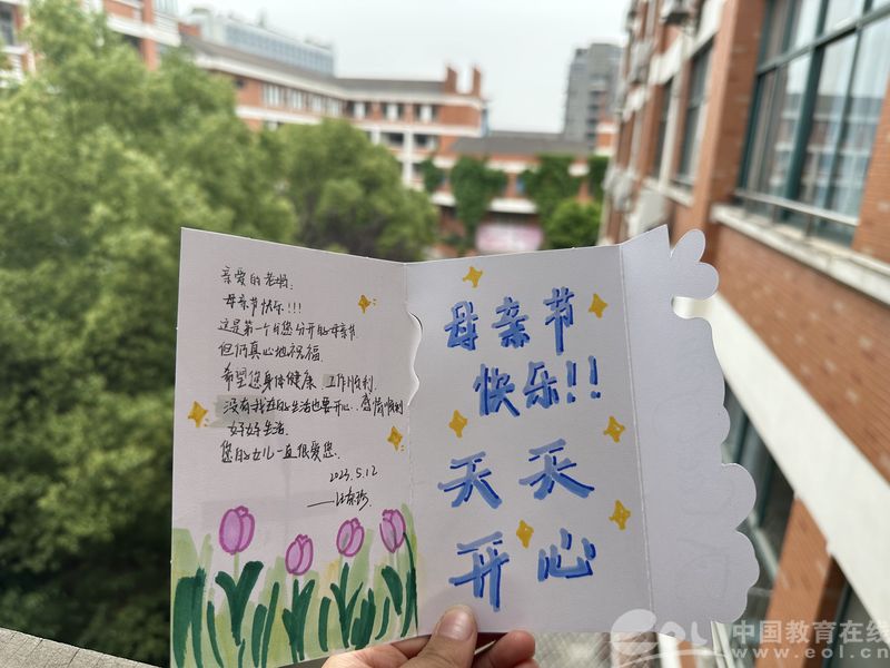 中国教育在线浙江站讯(编辑 白菁洁 通讯员 刘倩倩)今天是母亲节,为引导学生学会感恩,懂得感恩父母、感恩他人、感恩社会,中国教育科学研究院杭州胜蓝实验中学开展了一系列的母亲节庆祝活动,同学们通过亲手制作,用不同的方式,向母亲表达关爱和祝福。
