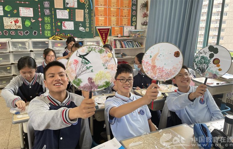妙手画扇,温情传递,同学们用绘画、文字向爸爸妈妈们表达感激之情。扇子上一首千古传诵的古诗《游子吟》、一段对母亲想说的话、一簇簇精心黏制的花朵凝聚着同学们对母亲深深的爱。这一把把精美的专属扇子正是同学们向爸妈传递的独一无二的爱。