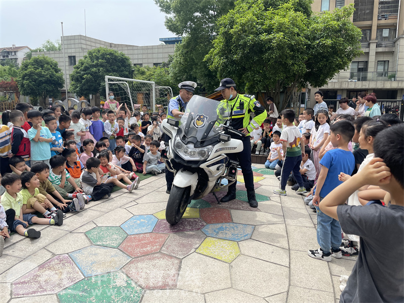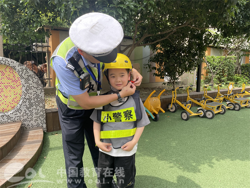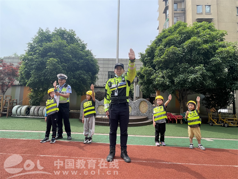 中国教育在线浙江站讯 (记者 鲁少辛 通讯员 廖银双)近日,为进一步提高师幼的交通安全意识,帮助幼儿从小养成遵守交通法规的良好习惯,拱墅区交警中队吴警官和陈警官走进杭州市西园实验幼儿园,开展了以“'幼'见交警,安全'童'行,迎绿色亚运”为主题的交通安全教育活动。