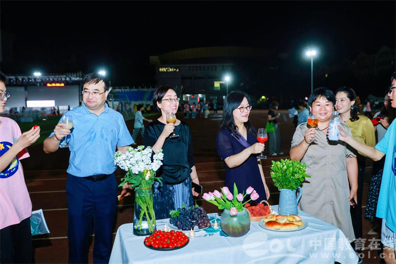 为了让九年级师生拥有一场难忘的相聚和回忆,学校让同学们把帐篷、天幕等露营设备搬入了学校操场。五彩的气球、闪烁的灯串、缤纷的美食……成长典礼的氛围感满满。平时同学们挥洒汗水的操场,在此刻化身为充满欢乐的露营场地。老师同学们一边享用美食,一边畅谈未来,十分惬意。