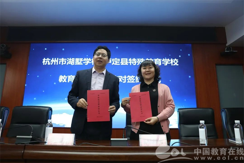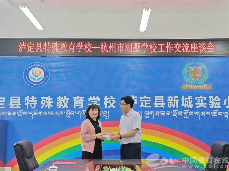 拱墅情谊,跨越万水千山,在泸定桥畔赓续传递。上午九时,泸定县教育体育局会议室掌声不断,杭州北苑教育集团和泸定县第二中学校、杭州市朝晖实验小学和泸定县二郎山片区寄宿制学校、杭州市湖墅学校和泸定县特殊教育学校签订结对协议,并为杭州市育才大城北学校副书记,现挂职泸定县教育体育局教研室教学研究员姚建玲授牌“姚建玲德育工作室”。