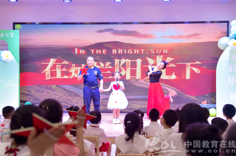 中国教育在线浙江站讯 在建党102周年来临之际,钱塘区前进小步幼儿园迎来了三周年园庆暨首届毕业典礼。在这个以“小步至千里,感恩在心里”为主题的特殊生日会上,小朋友们邀请了老兵爷爷和爸爸妈妈们一起见证这幸福的时刻。