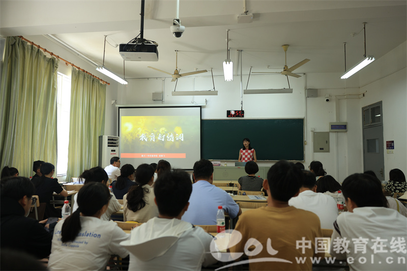 教育的情调,如沐春风,沁人心脾。19日上午,嘉兴一中实验学校班主任、省名班主任、嘉兴市第三批班主任工作室主持人、嘉兴市学科带头人、嘉兴市红船育人先锋沈燕飞老师为全体学员传经送宝,解惑答疑。“每一位关心儿童和青少年成长的父母和教师都应该养成一种教育的‘情调’以及教育的‘机智和敏感’。”沈燕飞老师引用卢晓中教授对《教育的情调》的书评切入,从“和谐、新鲜、冲动”三个方面具体展开讲授,分享了她在教育教学中的真实案例和应对问题挑战的具体做法。教育的情调建立在教师和学生的和谐关系当中,重视起始阶段的班级建设、给学生写信,与学生成为朋友、借助个人特长,鼓励学生以及管放结合,相对自由这四点是沈燕飞老师引领班级的“制胜法宝”。而走到学生当中去,和学生一起开展“我们”的活动,则帮助学生在初中阶段养成良好的学习习惯,以及对于学生理想的树立和对于社会认识也有着至关重要的作用。沈燕飞老师立足班主任岗位,精心设计,认真组织,在班级中开展了丰富多彩的各类活动,引发现场教师掌声连连。讲座内容充实、可行性强、指导性强、生动活泼,突出了主讲嘉宾“着眼于学生成长与发展”的优秀理念和师德师风,展示了沈燕飞老师对学生,对教育,对立德树人事业的热爱。本次讲座获得了在场老师们的一致好评。