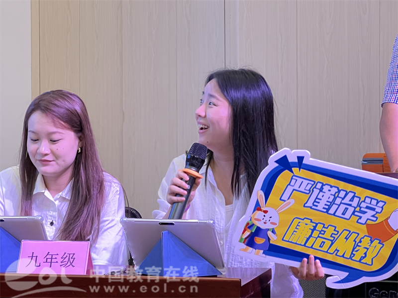八年级教师代表徐妍玥老师表示,这种创新的方式让所有老师都有更高的参与度,也让自己对本次师德培训的期待度大大提升,更对师德师风相关条例有了更加深刻的印象。