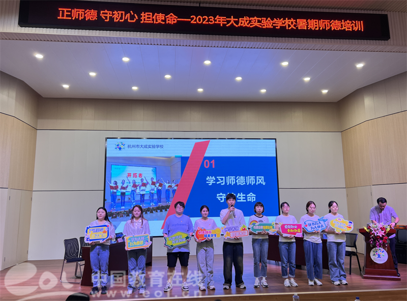 中国教育在线浙江站讯(记者 陈显婷 通讯员 余晓鸣)为进一步加强党风廉政、师德师风建设,培养高素质教师队伍,规范从教行为,践行育人使命,根据暑期师德培训方案的安排,8月26日上午,杭州市大成实验学校全体教师齐聚报告厅,开启“正师德 守初心 担使命”的暑期师德专题培训活动。