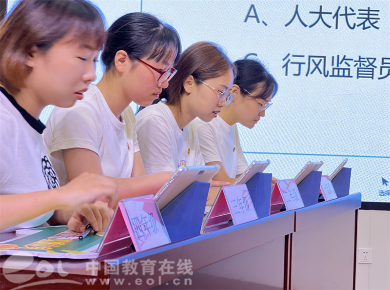 大成实验学校举行暑期师德培训活动 教师们手拿平板热情抢答知识点