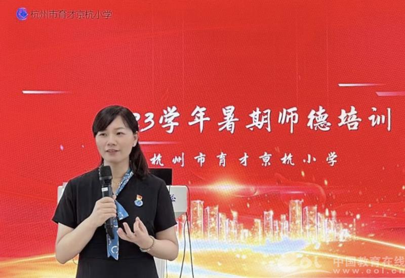 中国教育在线浙江站讯(编辑 邱彬鑫 通讯员 夏蓉)新学期伊始,杭州市育才京杭小学在学校党支部和工会的组织下,邀请全国劳动模范周明娟女士为全体教职员工开启本学期师德培训第一讲。