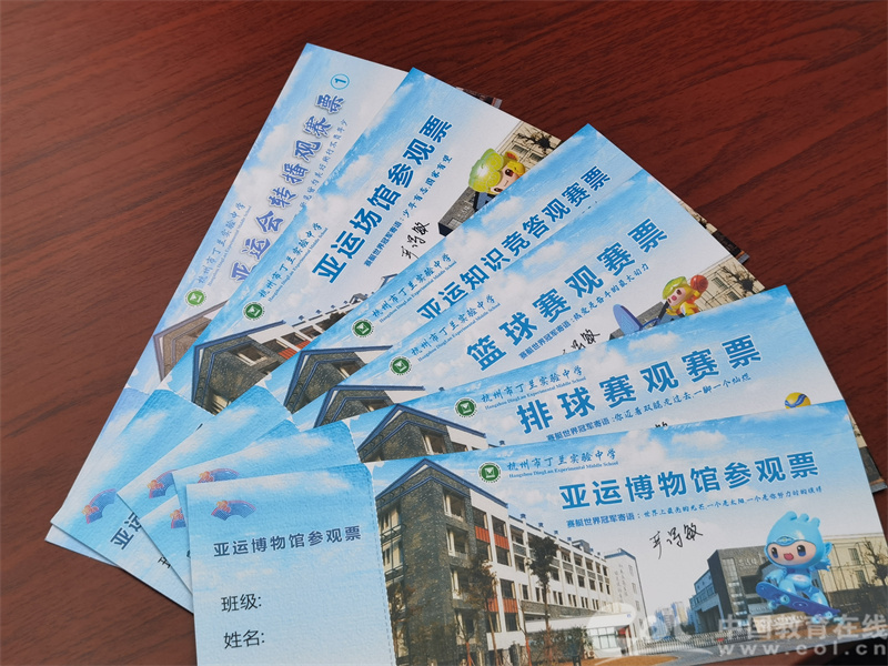 记者看到,门票有校园亚运会观赛票、知识竞答观赛票、亚运会转播观赛票、亚运博物馆参观票,以及亚运会现场观赛兑换票几类,门票上有前世锦赛女子轻量级双人双桨冠军、全运冠军严诗敏的亲笔签名和“我的亚运微心愿”留言处。