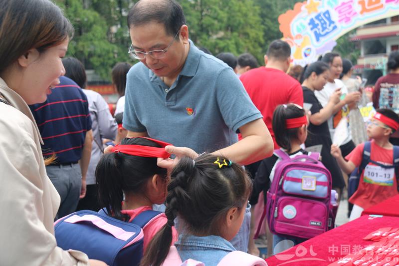 校园在一夜之间变成了属于德天娃的亚运比赛场馆,校长葛银铨、副书记申屠萍和姚副校长为运动员佩戴运动发带,孩子们也在大哥哥大姐姐的帮助下贴上了属于自己的运动号码牌,小朋友们变身成为活力无限的“德天运动员”。