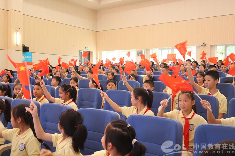 “同爱同在同梦想~”在开学典礼的最后,全校师生手持红旗,共同唱响亚运主题曲《同爱同在》。优美的歌声响彻校园,大屏幕上闪现出一幕幕高光时刻。