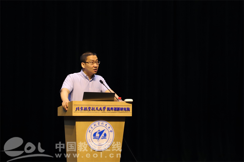 九年级开学典礼在北京航空航天大学杭州创新研究院举行,研究院吴玉崭副院长为九年级学子带来开学第一课——《空天报国·敢为人先——建设扎根中国大地的世界一流大学》。吴玉崭充满热爱与骄傲地与同学们分享北京航天航空大学的辉煌成就,细数北航精神“甘于奉献、敢为人先”在历史中的一次次成就,用北航拼搏精神鼓励高新学子更加坚定地航向远方。