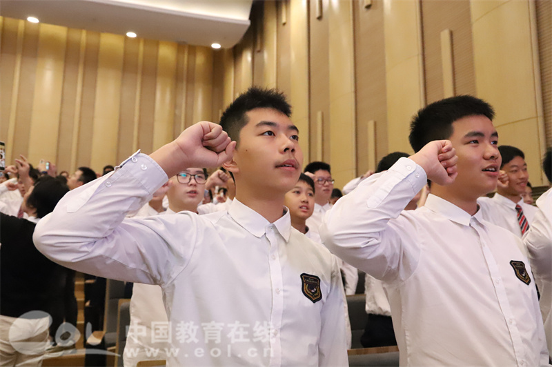 九年级师生现场一齐宣誓,“高新学子,志在四方;惜时聚力,自律自强;勤奋为桨,奋勇远航!”用铮铮誓言,表达对科技创新的热爱和追求,将在今后的学习和生活中,自觉传承与弘扬科技创新的精神,为祖国的繁荣富强贡献自己的力量。