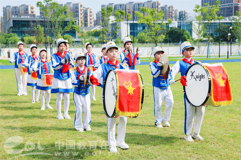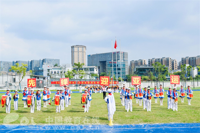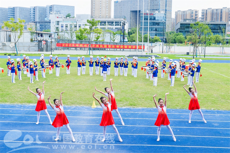 中国教育在线浙江站讯 (记者 陈显婷 通讯员 桑阳)为弘扬少先队特有的组织文化,迎接即将召开的杭州亚运会,充分展现杭州少先队员昂扬向上、意气风发的良好精神风貌,9月6日,由杭州市少工委主办的2023年杭州市少先队鼓号队考级暨展示活动在杭州市文澜第二小学举行。