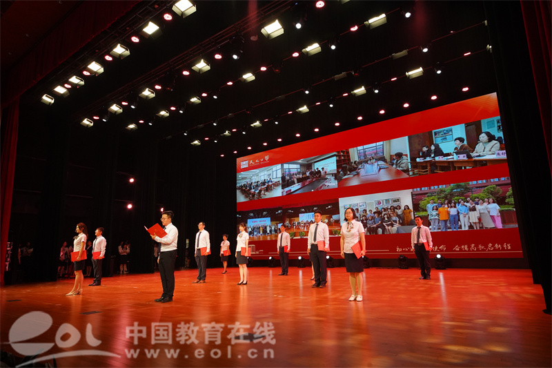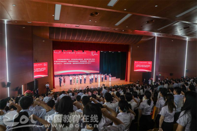最后,天元公学全体教职工进行宣誓。天元师者将以教育家为榜样,大力弘扬教育家精神,牢记为党育人、为国育才的初心使命,树立“躬耕教坛、强国有我”的志向和抱负,自信自强、踔厉奋发,为强国建设、民族复兴伟业作出新的更大贡献。