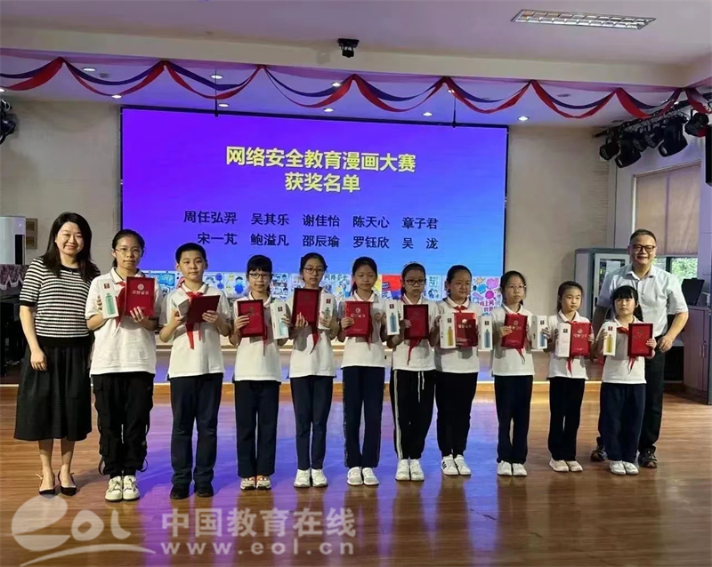 据介绍,此前学校还开展了以“还网络一片净土”为主题的网络安全教育漫画大赛。本次活动中,上城区教育局义务教育科科长程艳和上城区社区学院书记潘国伟为获奖同学颁奖。